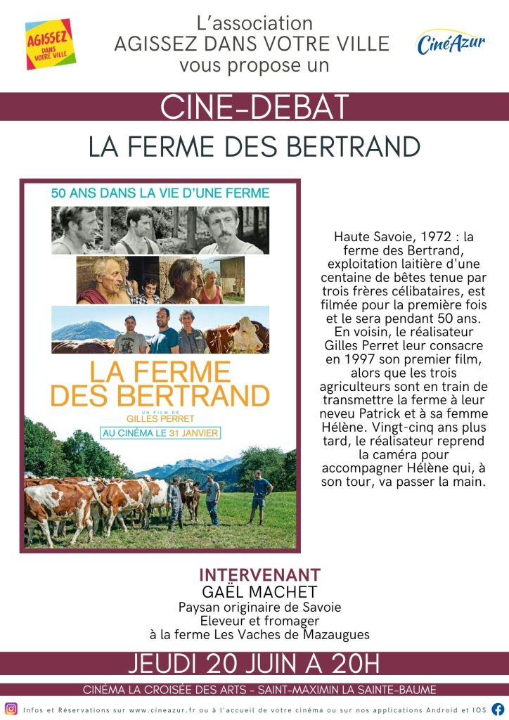 Jeudi 20 juin, 20 heures, La Ferme des Bertrand, un film documentaire de Gilles Perret, suivi d’un échange avec Gaël Machet, éleveur et fromager à la ferme Les vaches de Mazaugues.