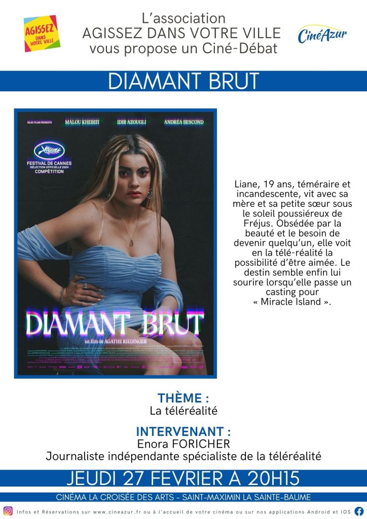 Ne manquez pas notre rendez-vous de février, jeudi 27 prochain, pour le film réalisé par Agathe Riedinger, Diamant brut.