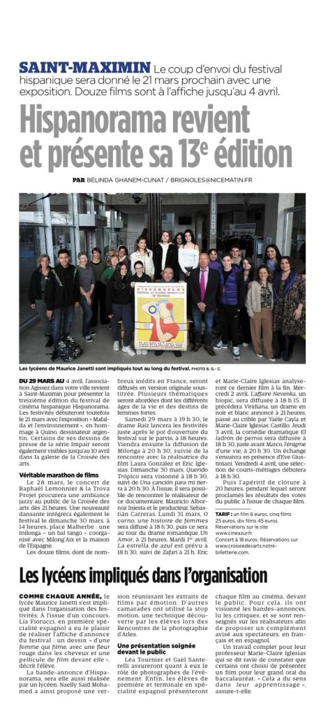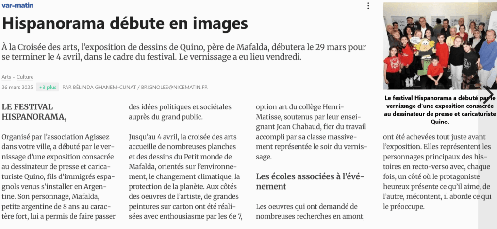 « Succès grandissant pour Hispanorama », Nice matin, S. B., 2/05/2016, https://www.nicematin.com/culture/succes-grandissant-pour-hispanorama-45940