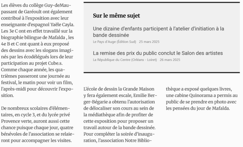 Zébuline. En amont du festival, vous organisez une exposition autour du personnage de bande-dessinée Mafalda. Pourquoi ce choix ?
